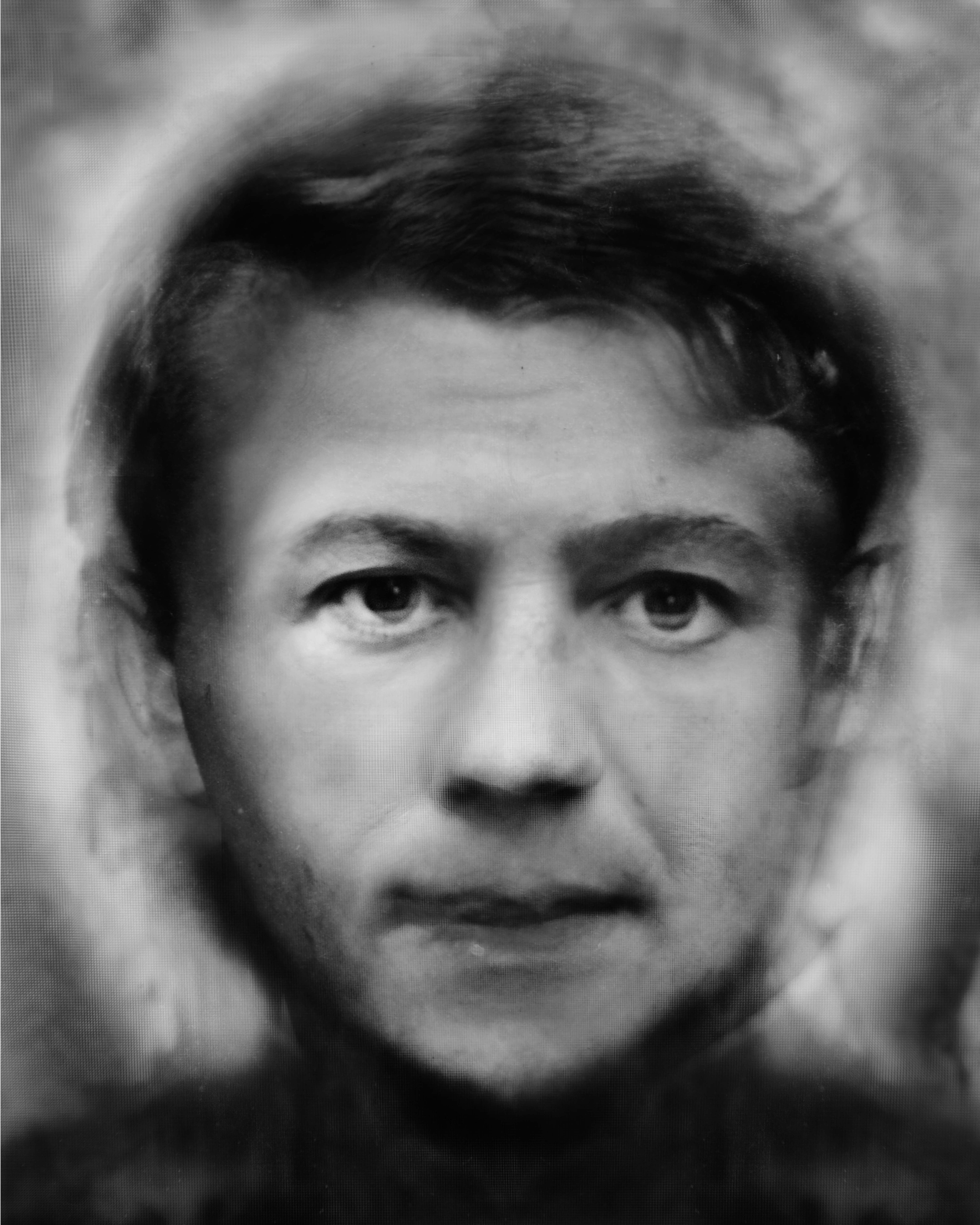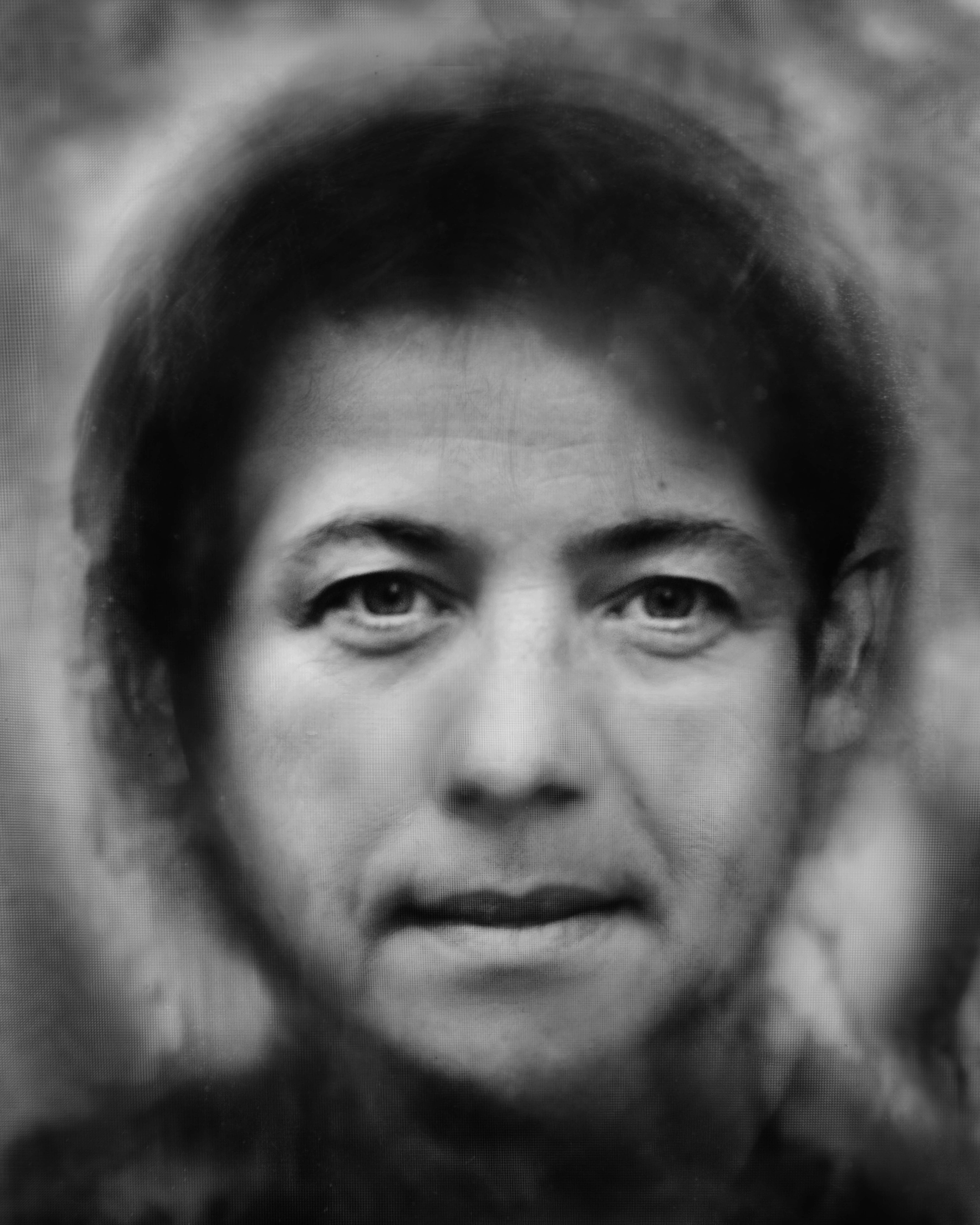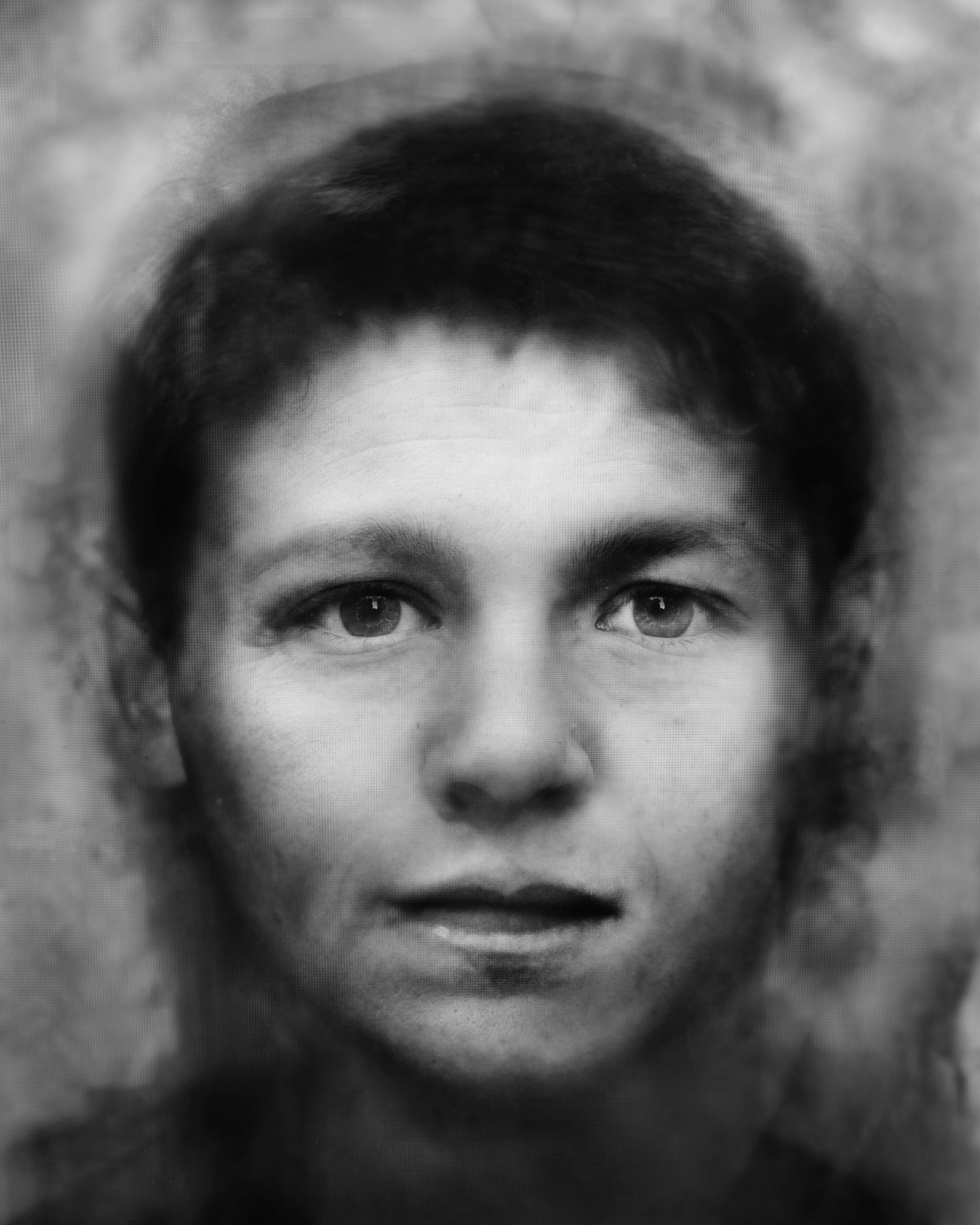 This photographic series assembled found passport photos, scanned and enlarged. We use passport photos as an objective proof of who we are. They come in standardised sizes and dictate how we look into the camera. The nineteenth-century French criminologist Alphonse Bertillon used mugshots (his own invention) as a scientific method to study the facial characteristics of criminals. But the portraits in A Constructed Family (2016) can hardly be called scientific documents. This series includes passport photos of friends and family members, people who mean a lot to me. Photographs of several people are superimposed, focusing on the gaze. This method resulted in black-and-white portraits that almost seem to be charcoal drawings. Instead of factual registrations, we see hybrid persons, composed of several individuals who hold an important place in my life. In fact, these photographs are not even that far removed from the truth, after all identity is something intangible.